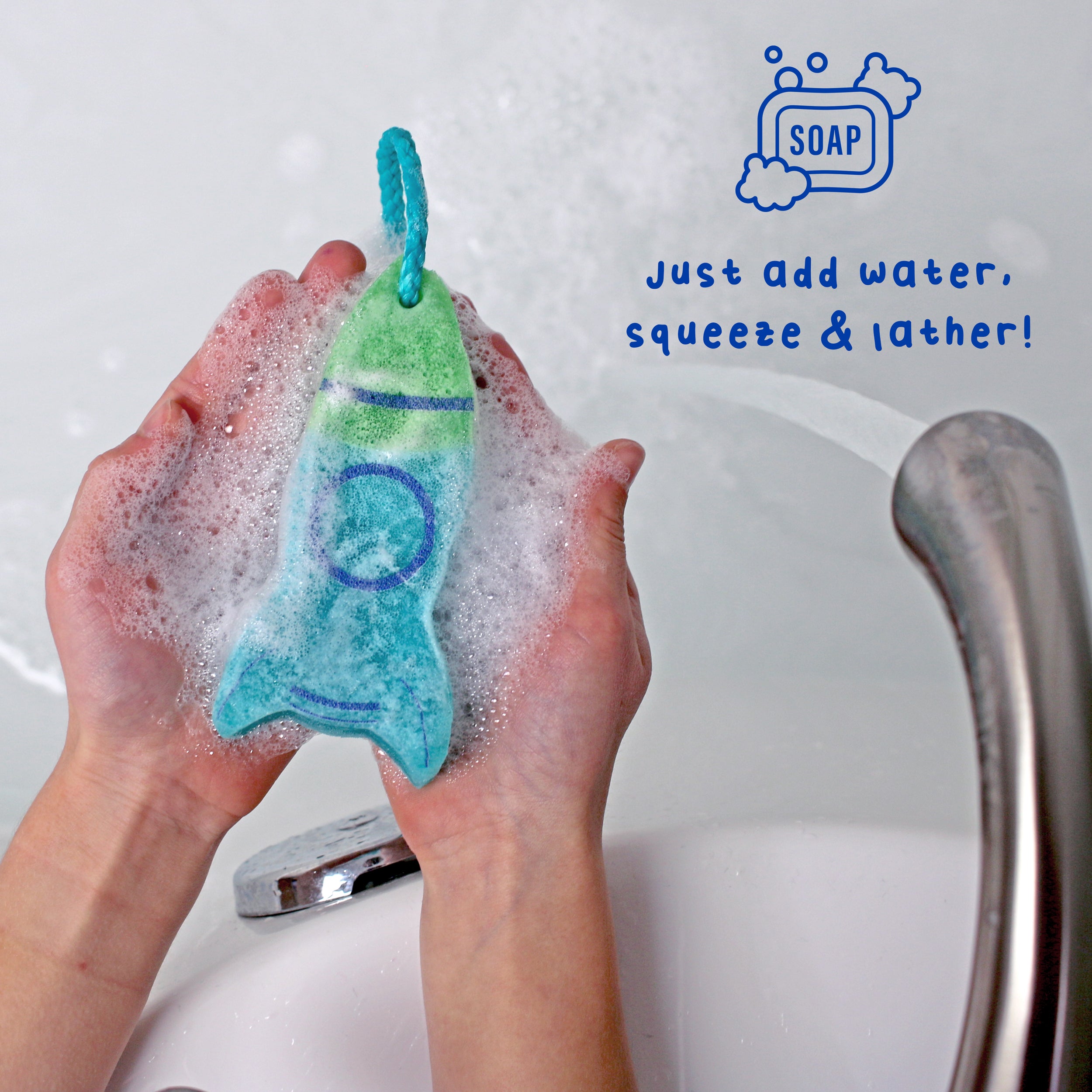 BLAST OFF to bath time fun! Turn an ordinary bath into an out-of-this-world adventure with Mr. Bubble's Buffer Rocket-Shaped Body Wash Infused Sponge! Simply add water and squeeze the sponge to activate the body wash and lather on skin. With up to 20 washes per sponge and bursting with a Berry Blast scent, this is sure to be your child's new favorite body wash.