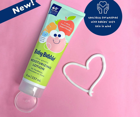 Snuggly skin starts here! For a limited time, enjoy 20% off our brand-new Baby Bubble Ultra Gentle Moisturizing Lotion - specially made for your little one's delicate skin.